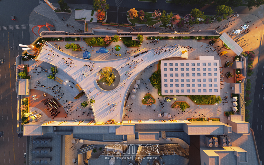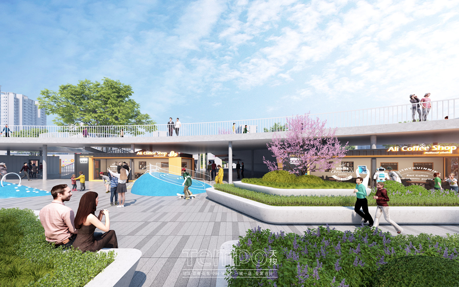 屋顶花园休闲广场融合户外营地、网红打卡点与露天舞台等功能,将生态与商业有机结合,成为城市上方的“呼吸之地”,吸引全城客流。