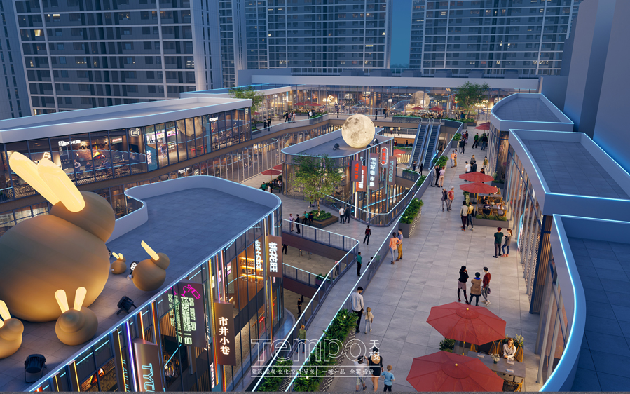 项目由天梭TEMPO公司采用一体化多专业协同模式推进,以商业规划为核心基石,从商业规划反推并落地空间、建筑、景观、亮化等正向设计手法。项目自2023年启动,历时两年顺利开业,完成从无到有的完整建设闭环。